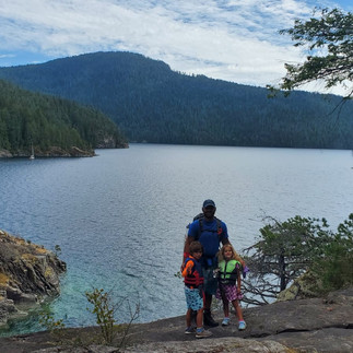 From there, we picked our way to a natural overlook where we fueled up with a hearty lunch in anticipation of the long hike to come. The Unwin Lake to Melanie Cove trail proved to be highly technical, with lots of steep cliff scrambles and sheer drop-offs. Both kids were troopers and tackled the challenges with determination, but after Yael fell and skinned her knee for about the 11th time in 10 minutes near the shores of the third lake, we realized it was time to turn back. We'd made excellent progress given the difficulty of the trail, but reaching Melanie Cove by foot is an adventure we'll have to revisit again in the future. We returned to Lake Unwin for a late afternoon dip with tired legs and full hearts. It was a truly beautiful day.